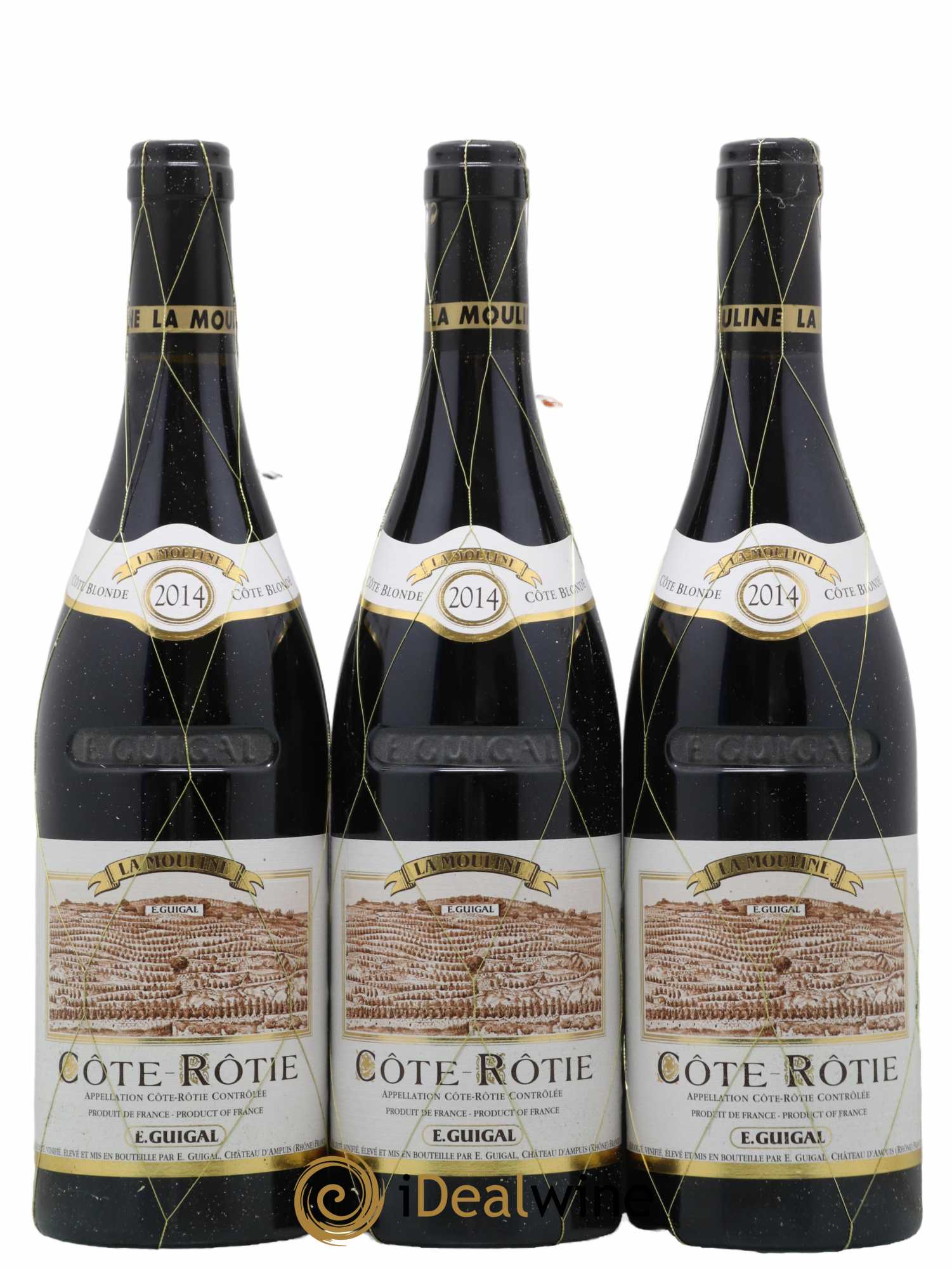 Parcelle d'à peine un hectare, La Mouline est plantée sur la Côte Blonde dont elle constitue indéniablement le cru emblématique. Ce vignoble, qui appartient en monopole à la maison Guigal depuis 1966, est remarquablement âgé - 75 ans - et connaît une exposition Sud favorable à la pleine maturité des raisins. Les vignes s'étalent sur des terrasses en forme d'amphithéâtre romain.Le vin de la Mouline bénéficie d'un élevage unique de 40 mois en pièces neuves et, surtout, est la seule du trio LA-LA-LA a contenir une telle importance de viognier (11%) qui lui offre un profil résolument "bourguignon" d'après les dires d'Eve Guigal. D'une finesse et d'une minéralité exceptionnelles, il révèle de sublimes arômes de cassis, de mûre et de violette. Si son velouté et son soyeux lui donnent l'impression d'être accessible dès ses premières années, son potentiel de garde n'en reste pas moins impressionnant.