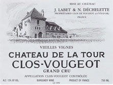 Depuis 1890 dans la famille de François Labet, le Château de La Tour jouit de vignes quinquagénaires. Peu de domaines incarnent autant le Clos de Vougeot que le château de La Tour. En effet, celui-ci est le seul domaine à se situer dans le Clos et en est l'un des principaux propriétaires. Certifié en agriculture biologique depuis 1992, le domaine s’étend sur un peu moins de six hectares de vignes, promettant des quantités limitées. La production annuelle est en effet de 22.000 bouteilles de Cuvée Classique et 3.000 de Cuvée Vieilles Vignes lors des bonnes années. Sans oublier la cuvée "Hommage à Jean Morin" qui fut créée en 2010 afin de célébrer le centenaire de la plantation des vieilles vignes du domaine.