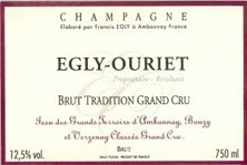L'histoire de la maison Egly-Ouriet commence au lendemain de la seconde guerre mondiale, avec trois hectares de vignes dans le Grand Cru Ambonnay. Par la suite, d'autres parcelles ont été acquises, atteignant aujourd'hui 12 hectares (10 hectares en grands crus et deux en premier cru), plantés majoritairement en pinot noir, complété de chardonnay et pinot meunier et originaires de sélections massales. Tous les vins vinifiés en barrique et vieillissent au minimum quatre ans avant d'être commercialisés ; ils sont faits sans fermentations malolactiques afin de conserver un maximum de fraîcheur. Francis Egly, Récoltant-Manipulant dirige ce domaine très réputé qui produit des champagnes de haute qualité, précis et élégants.