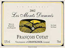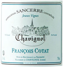 François Cotat travaille sur le domaine familial depuis 1979 avec son père dont il a pris la suite en 1998. Ce petit domaine familial de Chavignol (village célèbre pour son fromage de chèvre) détient des parcelles en Grande Côte, en Monts Damnés et en Culs de Beaujeu (les coteaux atteignant jusque 45% de dénivelé). Des vendanges tardives en surmaturité permettent d'obtenir des vins onctueux avec généralement un peu de sucre résiduel. Ces vins traversent les décennies sans problème et ils contribuent à la légende des grands vins de Sancerre. Ce domaine produit de grands sancerres, au potentiel de garde impressionnant. Tous les vins du domaine sont réservés d'une année sur l'autre, François Cotat fait partie du cercle très fermé des "Papes" de Sancerre, de ceux qui n'ont jamais de vin à vendre tant les cuvées sont réservées d'une année sur l'autre, avec moins de 5 hectares de vignes, le volume produit est faible !