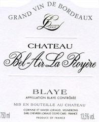 Etiquette du vin Château Bel Air La Royere 2013
