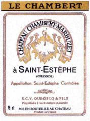 Construit au début du XIXème siècle, ce château a été racheté en 1962 par Hervé Duboscq, propriétaire du célèbre château Haut Marbuzet. Chambert Marbuzet est vinifié suivant les mêmes pratiques que ce dernier et dans les mêmes locaux. Les vins sont élevés en fûts de chêne de trois ans, pendant 18 mois. Ils tirent leur originalité d'un sol argilo-calcaire et non en graves comme les autres vignobles de l'appellation Saint Estèphe.