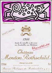La particularité du château Mouton-Rothschild, s'il faut encore la rappeler, est de collaborer chaque année avec un artiste pour concevoir une étiquette inédite pour le vin. On peut ainsi retrouver des étiquettes réalisées par Chagall, Braque, Picasso, Dali, Francis Bacon et même le Prince Charles d'Angleterre !