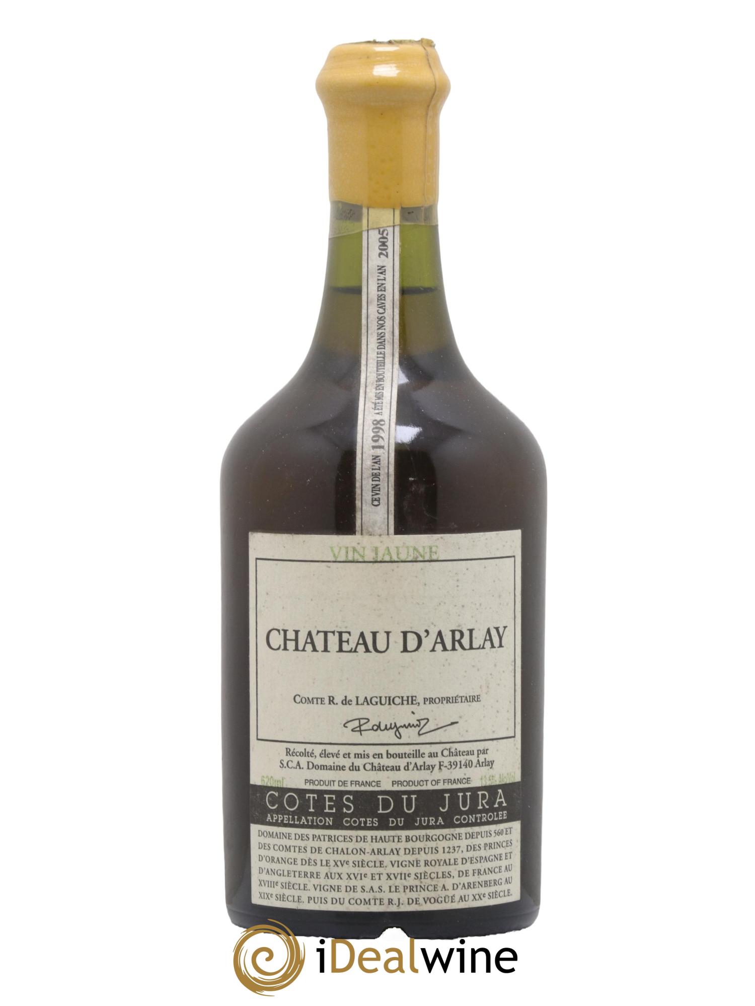 Lo Château d’Arlay è stato creato alla fine dell’XI secolo ed è considerato il più antico château viticole della Francia. Classificato come monumento storico, lo château fu in passato un convento dell’Ordine dei Minimi. Nel XVIII secolo, la contessa di Lauraguais lo scelse come dimora. Nel 1960, il conte di Laguiche decise di ricreare la tenuta fondata nell’Alto Medioevo dai conti di Chalon-Arlay, Principi d’Orange. Il figlio Alain, responsabile dell’azienda vinicola odierna, pone l’accento su un metodo moderno di vinificazione, accompagnato da un invecchiamento tradizionale in barrique all'interno delle splendide cantine dello château, risalenti al XVII secolo. Alain, a sua volta, col tempo sta lasciando sempre più spazio al proprio figlio Pierre-Armand. Il vigneto si estende su una superficie di circa 22 ettari e annovera diversi vitigni quali pinot noir, trousseau, poulsard, chardonnay e savagnin. Tutte le vigne sorgono in collina, ad un’altitudine compresa tra 200 e 240 metri. Alcune vigne sono relativamente anziane, essendo state piantate nel 1953. Il vigneto è lavorato secondo criteri biologici, pur senza certificazioni. La tenuta rappresenta un’icona dello Jura, e i suoi vini sono assolutamente da non perdere!