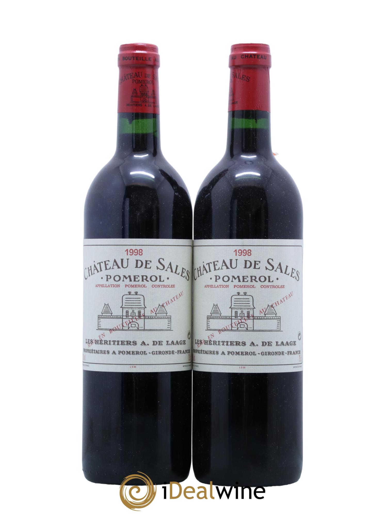 Maggiori informazioniQuantità: 2 bottiglieCommento: 2 Etichette con delle leggere macchieLivello: 2 NormaleProvenienza: privatoIVA detraibile: noRegione: BordeauxDenominazione: PomerolProprietario: GFA du Château de Sales