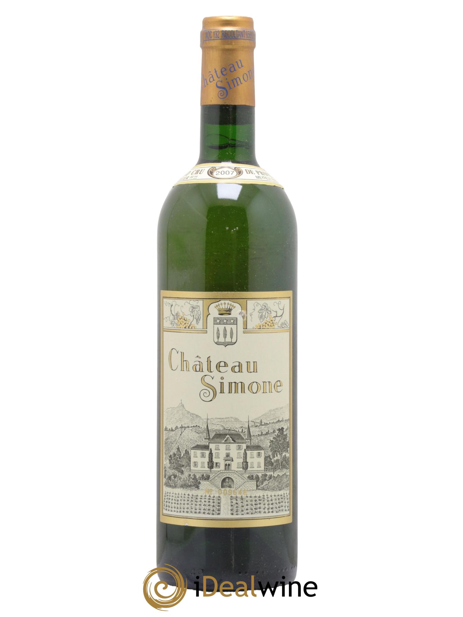 Famoso per la sua grande eleganza e la sua incredibile capacità d’invecchiamento, il bianco di Château Simone si distingue per un colore dorato e per le note giovanili floreali e fruttate, che evolvono poi verso una tonalità oro antico e un bouquet potente e delicato. Il vino nasce da un assemblaggio di uve clairette, grenache blanc, ugni blanc, bourboulenc e muscat blanc vendemmiate manualmente a piena maturità. Dopo una selezione, i grappoli sono stati pigiati in modo soffice e il mosto avviato alla fermentazione con lieviti autoctoni. Il vino è maturato in piccole botti di rovere per 18 mesi, di cui 6 mesi sulle fecce fini.