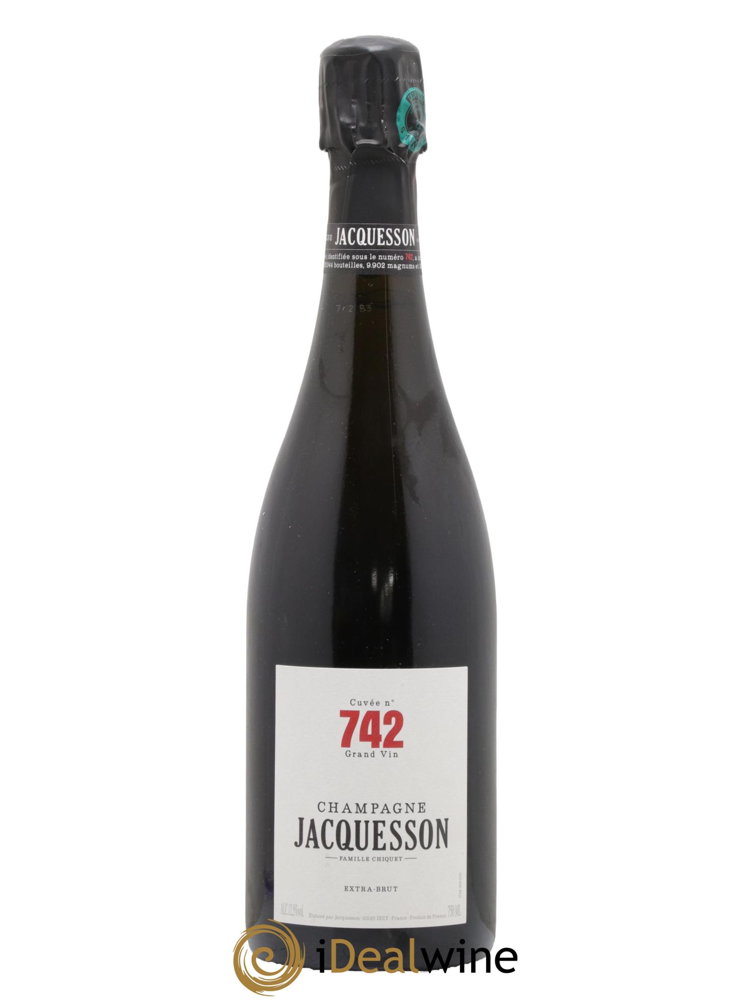 Famosa per realizzare bottiglie capaci di riflettere l'identità e il terroir dell'annata, la Maison Jacquesson firma questa cuvée n° 742, creata con una percentuale maggioritaria della vendemmia 2014. La cuvée è composta da chardonnay, pinot noir e pinot meunier ed è stata vinificata in vecchie grandi botti e in demi-muid, con bâtonnage e svolgimento della malolattica. All'assaggio svela aromi molto generosi (frutta gialla matura, note di pasticceria) ben bilanciati da una vivace mineralità.
