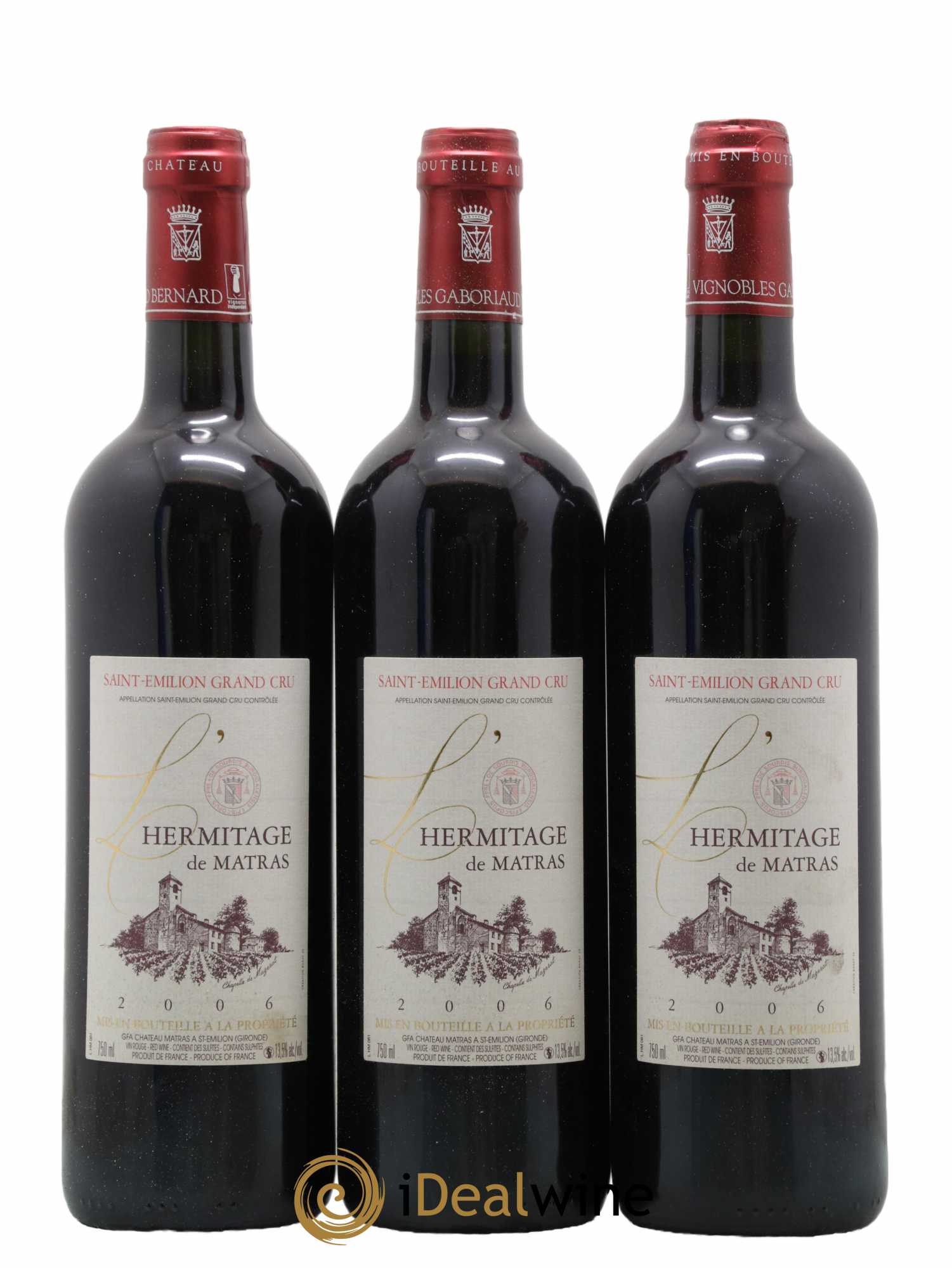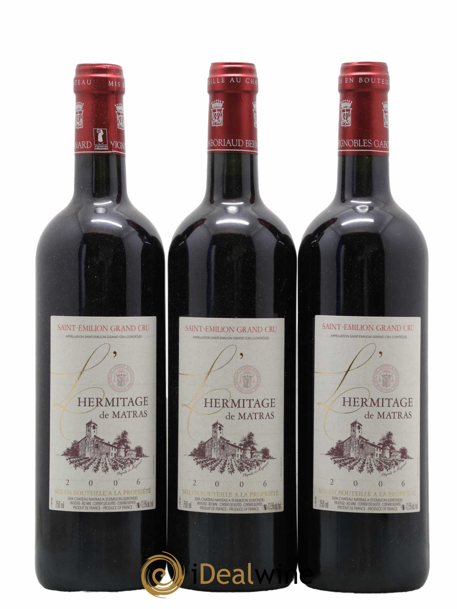 Situato alle pendici di una collina che domina la valle della Dordogna, Saint-Émilion è un piccolo borgo medievale inserito nell'elenco dei patrimoni dell'UNESCO. Il suo vigneto è molto famoso ed è distribuito su nove comuni, con una grande diversità di terroir. L'altopiano calcareo e il rilievo argilloso-calcareo danno vini di un bel colore, corposi e strutturati. Verso Pomerol, i terreni ghiaiosi donano vini più fini. Per quanto riguarda i vitigni, si coltivano le tipiche varietà bordolesi, con predominanza di merlot. Solo i migliori vini hanno diritto alla denominazione Grand Cru; la maggior parte proviene dal margine dell'altopiano calcareo e del rilievo argilloso-calcareo. La classificazione dei Grand Cru è stata istituita nel 1955 e viene rivista ogni 10 anni. Distingue due categorie di cru: i Premier Grand Cru Classé (A et B) e i Grand Cru Classé. Solo due château rimangono sempre classificati "A" : Ausone e Cheval Blanc. I vini di Saint-Émilion sono eleganti e corposi, lunghi al palato e di grande finezza. In gioventù il colore è rubino con riflessi color granato. Il bouquet è complesso e varia a secondo dell’invecchiamento, con eleganti note di frutti rossi, ma anche con note di prugna o cenni tostati. Questa ricchezza aromatica si ritrova al palato e con il passare degli anni i tannini si affinano e i profumi evolvono verso note terziarie. Morbidi e corposi, esprimono un perfetto equilibrio che li rende piacevoli fin dalla giovinezza. Il vino prodotto da Château l'Hermitage è in effetti la tête de cuvée di Château Matras, proprietà della famiglia Gaboriaud-Bernard. I vini provengono da un vigneto che ha un'età media di 45 anni, ben posizionato vicino ad Angélus e Beauséjour Duffau. È realizzato con tutte le cure riservate alle cuvée cosiddette “de garage”: macerazione a freddo e invecchiamento in botti di rovere nuove per un periodo di 18-20 mesi. Potenti e setosi al palato, possono essere degustati giovani ma hanno un buon potenziale d’invecchiamento.