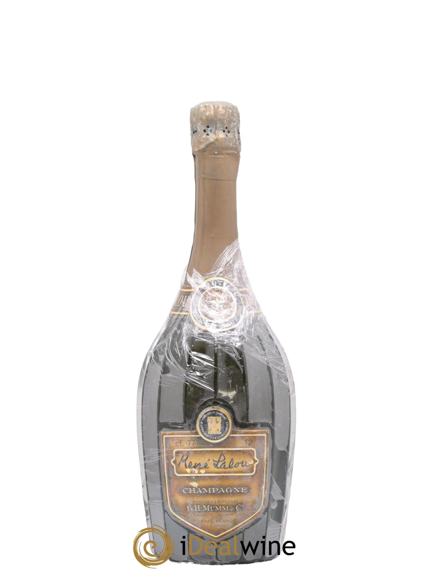 Mumm ha creato una cuvée prestigiosa in onore del suo illustre dirigente, René Lalou, responsabile della fama di Mumm in tutto il mondo. La cuvée René Lalou è uno champagne millesimato. Al naso, rivela aromi di frutta fresca e secca, ma anche leggere note di vaniglia e miele. L'attacco al palato è fresco per poi cedere il posto ad una materia ricca e ad un finale piacevole.