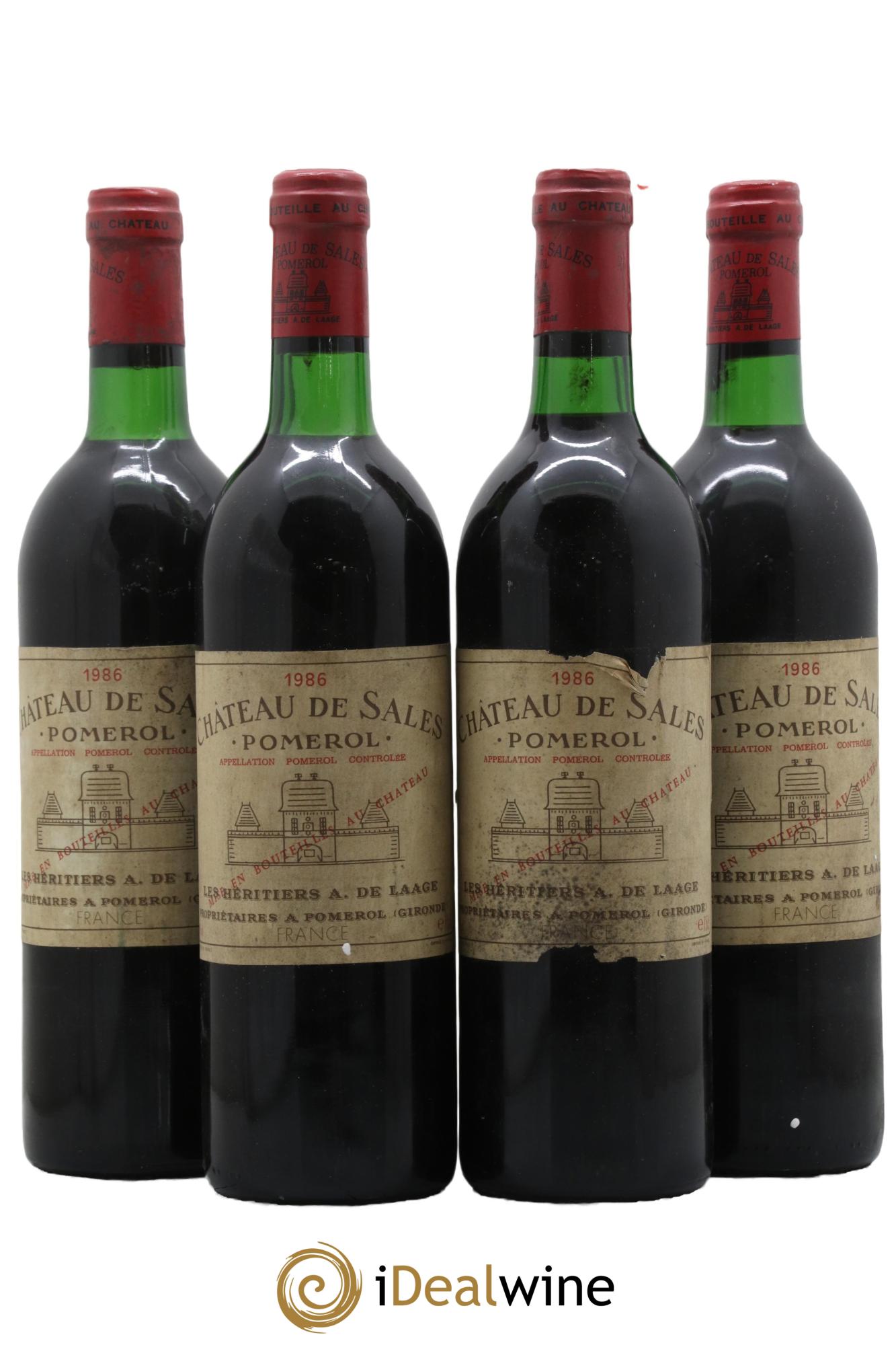 Maggiori informazioniQuantità: 4 bottiglieCommenti: 4 Etichette macchiate, 1 Etichetta leggermente strappataLivello: 1 Normale, 3 A livello del colloProvenienza: privatoIVA detraibile: noRegione: BordeauxDenominazione: PomerolProprietario: GFA du Château de Sales