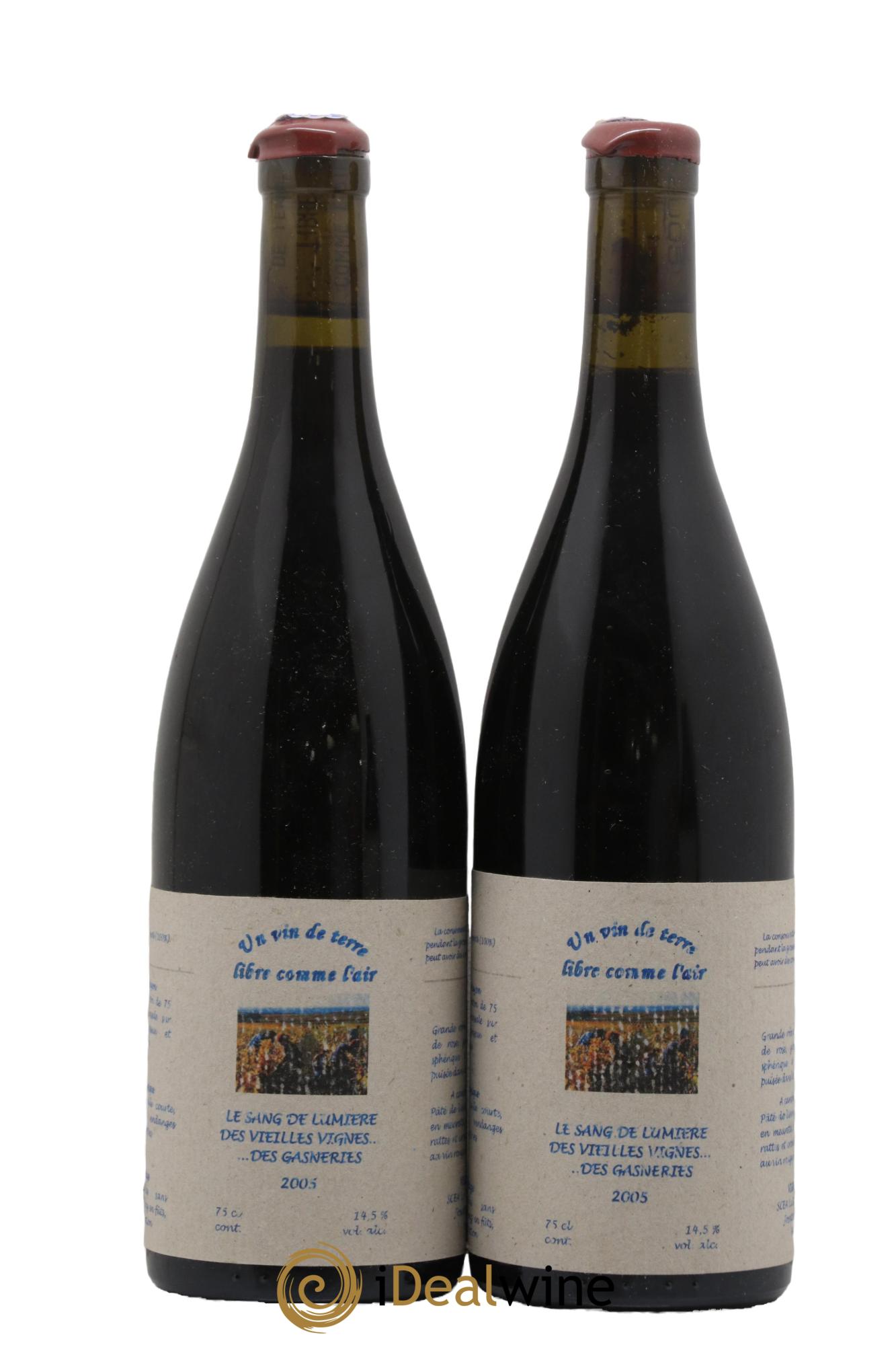 Vin de France Le Sang de Lumiere des Vieilles Vignes de Gasneries Un Vin de Terre Libre Comme l'Air Josette Medeau et Pierre Weyand 2005