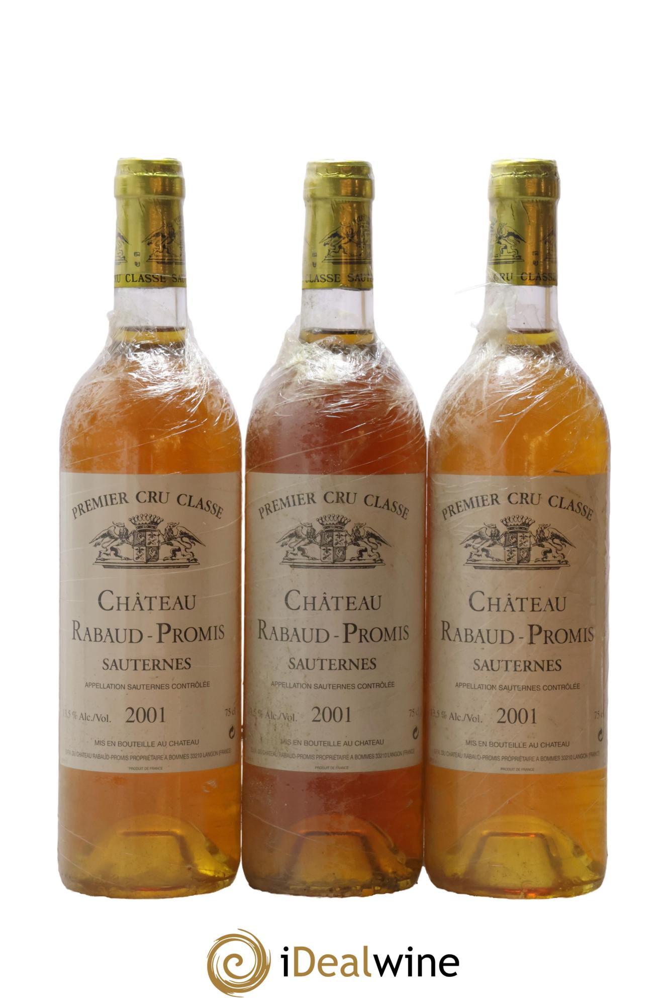Maggiori informazioniQuantità: 3 bottiglieCommenti: 3 Bt con pellicola protettiva intorno alle etichette, 3 Etichette leggermente macchiateLivello: 3 A livello del colloProvenienza: professionistaIVA detraibile: sìRegione: BordeauxDenominazione: SauternesClassificazione: 1er Grand Cru ClasséProprietario: GFA du Château Rabaud Promis