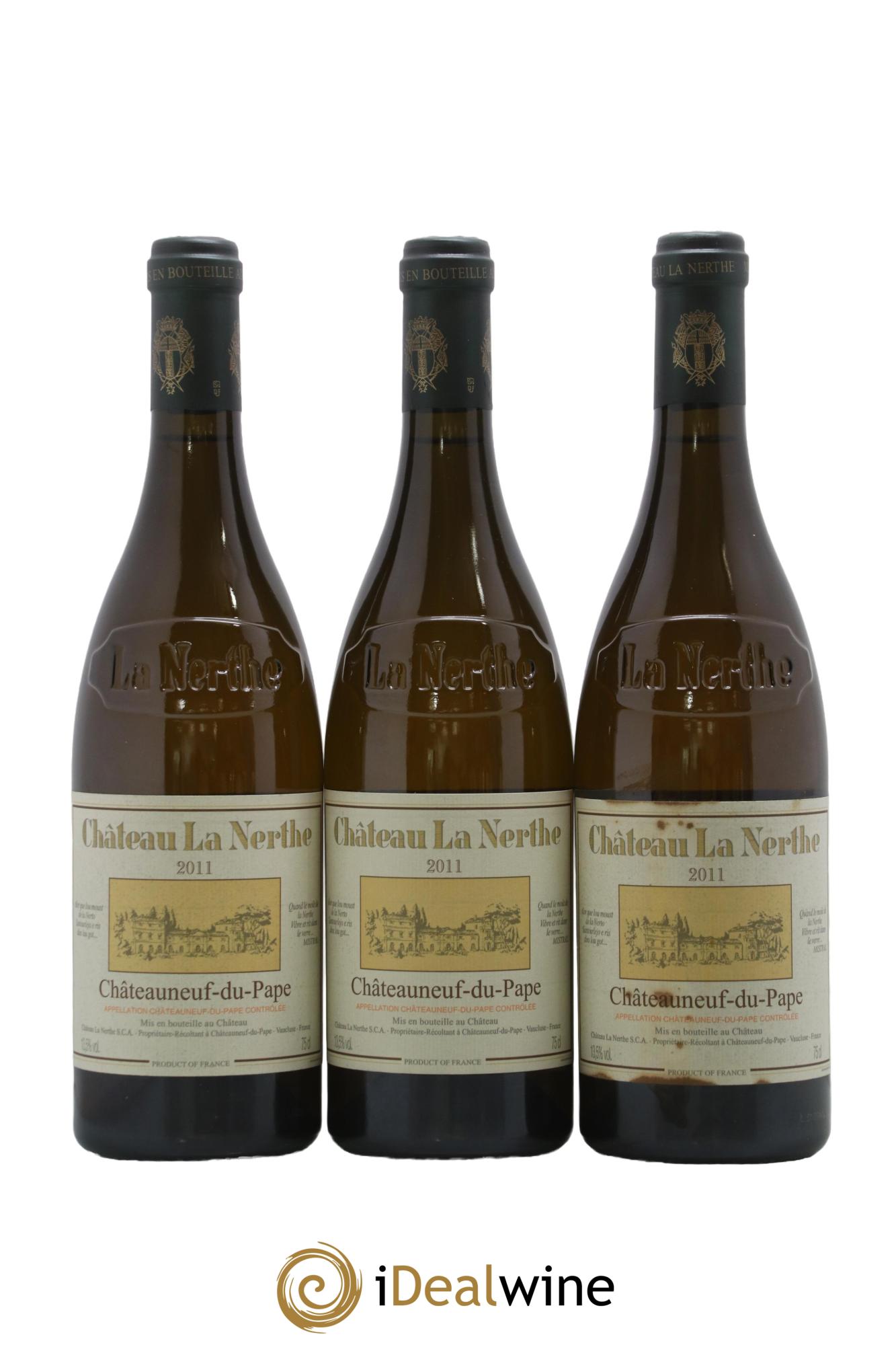 Questo Châteauneuf-du-Pape è realizzato con quattro grandi vitigni autoctoni a bacca bianca del Rodano: grenache blanc, bourboulenc, clairette e roussane, che si esprimono particolarmente bene sui suoli di La Nerthe, composti da sabbie e marne. La fermentazione si svolge in tini di acciaio inox a temperatura controllata, in modo da consentire una vinificazione delicata, che richiedere del tempo. Il vino matura poi sulle proprie fecce fini, che svolgono un ruolo di naturale protezione contro l'ossidazione. La maggior parte del vino si affina in vasche d’acciaio, ma un'altra parte (di solito la roussanne) viene trasferita in diversi tipi di botte per 6-7 mesi. Vengono effettuati periodici bâtonnage per favorire gli scambi tra i vino e i suoi lieviti. All’olfatto regala una sensazione di freschezza, accompagnata da aromi di fiori bianchi. Al palato esprime una bella mineralità, impreziosita da note di liquirizia.