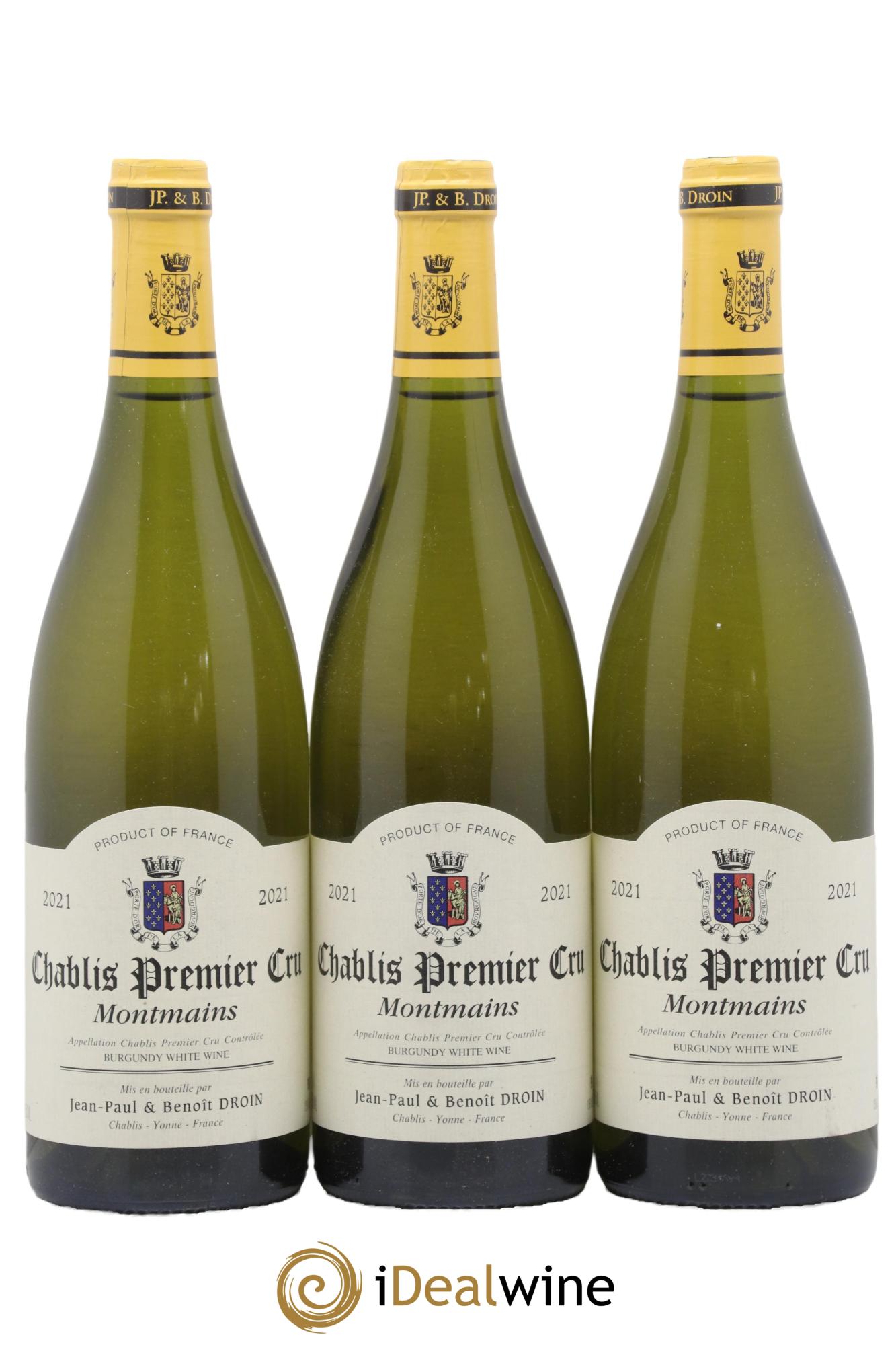 Chablis 1er Cru Montmains Jean-Paul & Benoît Droin (Domaine) 2021 - Lotto di 3 bottiglie - 0