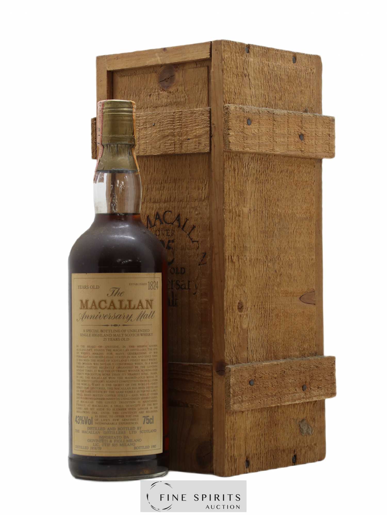 Macallan (The) 25 years Of. 1958-1959 Anniversary Malt bottled 1985 Giovinetti & Figli Import Special Bottling