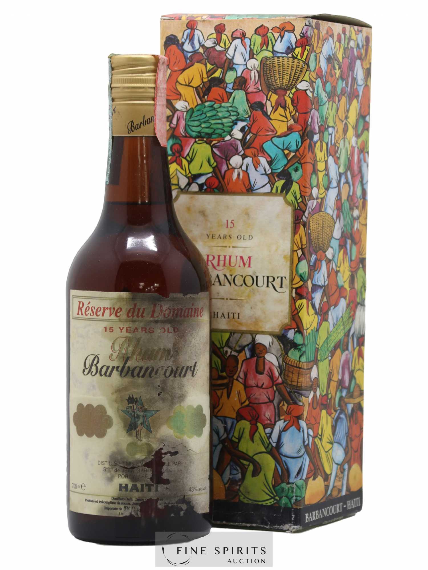 Quantità: 1 bottigliaCommenti: 1 Etichetta macchiata, 1 Etichetta sporca, 1 Etichetta leggermente rovinata, 1 Etichetta leggermente scollataLivello: 1 NormaleProvenienza: privatoIVA detraibile: noRegione: HaitiDenominazione: Barbancourt
